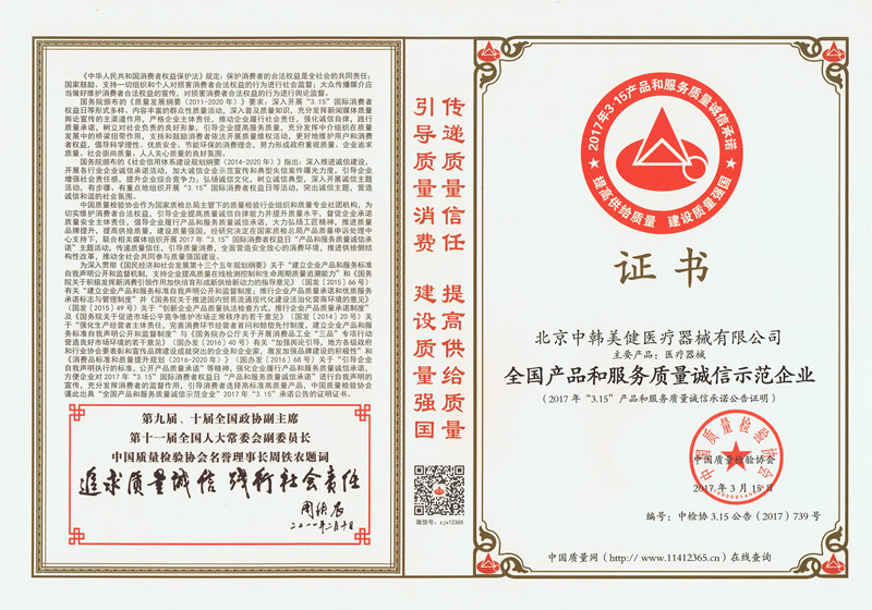 美健醫(yī)療器再次榮獲“3.15國際消費(fèi)者權(quán)益日”認(rèn)證