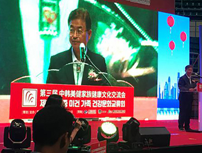 交流會(huì)開始,李相福會(huì)長和慶尚北道省長、慶州市市長做了歡迎辭、賀詞,李相福會(huì)長在賀詞中表示:美健22年前開始進(jìn)入國際健康舞臺(tái),在“全世界人 共享美健”的口號(hào)下,用美健醫(yī)療器為人類創(chuàng)造健康幸福的樂園不懈努力,美健醫(yī)療器憑借優(yōu)良的品質(zhì)和奇特的療效在醫(yī)療器械行業(yè)首次被評(píng)為“世界一流商品”。特別值得一提的是, 中國是美健醫(yī)療器第一個(gè)出口的國家,今天與中國美健家族共度盛會(huì),倍感激動(dòng),回顧過去,中國美健22年的艱辛歷程,感謝中國美健家人的陪伴,造就了現(xiàn)在中國的美健。