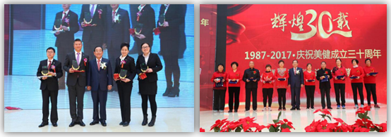 現(xiàn)場活動開始,大家一起觀看了《感恩一路有您陪伴--美健成立30年獻禮》記錄短片,一同回顧了京、冀地區(qū)美健事業(yè)的崢嶸歲月和奮斗歷程,隨后李相福會長給京、冀地區(qū)事業(yè)者頒發(fā)了“美健特殊貢獻獎”和工作滿十年員工的“最美服務老師獎”、“美健愛心服務老師獎”及美健優(yōu)秀顧客的獎項。