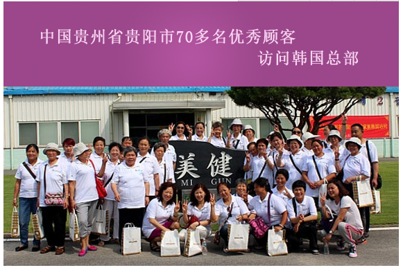 在2014年6月25日,中國貴州省貴陽市70多名優(yōu)秀顧客訪問了韓國總部.(株)美健醫(yī)療器走進中國市場已有18周年,中國的美健優(yōu)秀顧客一如既往的訪問韓國總部,不僅受到了韓國總部李相福會長的真誠接待,而且參觀了美健位于世宗市的生產(chǎn)基地.