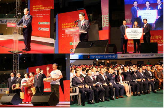 李相福會長致開幕詞,水原市市長廉泰英和京畿道知事南京弼,京畿道觀光旅游公司社長洪勝彪等做了紀念詞和賀詞。緊接著有了捐贈牌及感謝牌互換儀式和京畿道MICE繪畫表演。