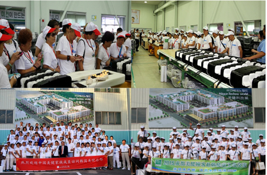 同時,參加本屆“韓中美健家庭健康文化交流會”的中國客戶,于9月14日~18日訪問了中部圈最大的住宅型工廠美健TECHNO WORLD,還參觀了位于世宗市的美健生產(chǎn)總部,了解了美健的歷史和歷代產(chǎn)品。