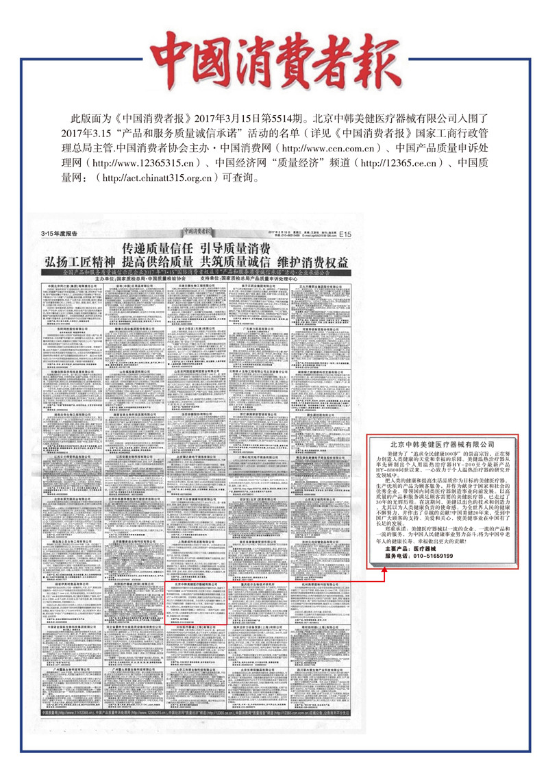 此次,美健醫(yī)療器憑借著規(guī)范的管理、優(yōu)質(zhì)的產(chǎn)品、貼心的服務(wù)在315當(dāng)天,連續(xù)8年榮獲了“全國產(chǎn)品和服務(wù)質(zhì)量誠信示范企業(yè)”榮譽(yù)稱號。